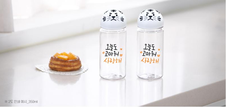 친환경 호랑이 물병 350ml, 500ml은 임인년을 맞아 제작된 호랑이 보틀로 앙증맞고 근엄한 호랑이 얼굴이 매력적입니다.